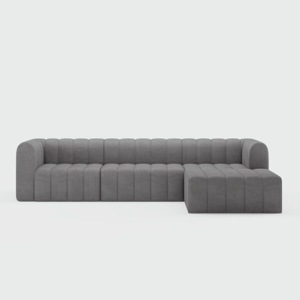 The 118.9″ modular sectional sofa set with plush velvet upholstery and composed convertible sections to fit any living space. Its modular design enables different configurations for a perfect fit in any room. Perfect for large living rooms, this sectional can be an inviting centerpiece to provide style and functionality in comfortable lounging.
