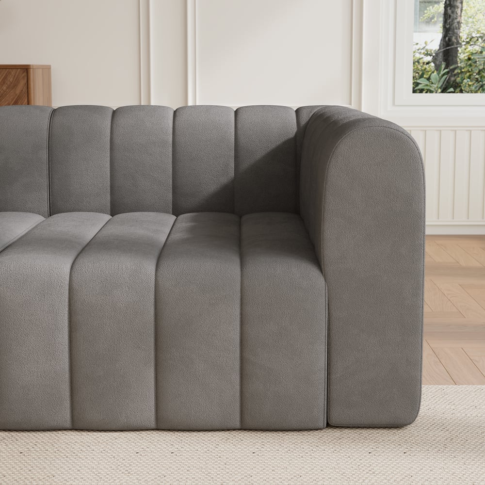 The 118.9″ modular sectional sofa set with plush velvet upholstery and composed convertible sections to fit any living space. Its modular design enables different configurations for a perfect fit in any room. Perfect for large living rooms, this sectional can be an inviting centerpiece to provide style and functionality in comfortable lounging.