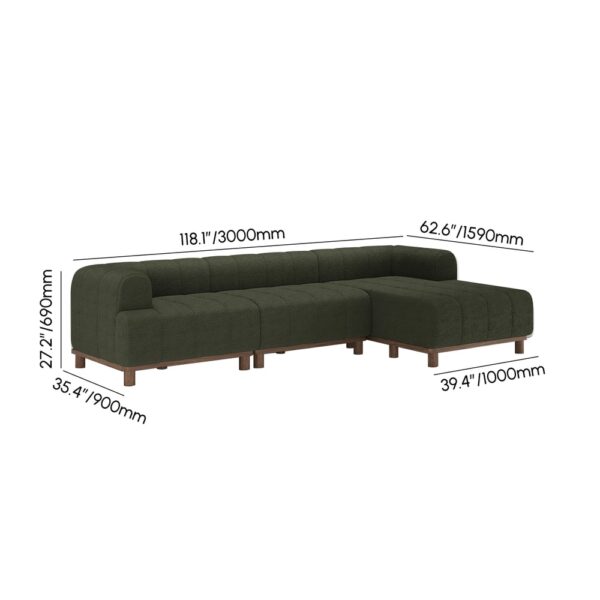 118" Boucle 3-Piece L-Shaped Chaise Sectional with Wood Legs weights dimensions image