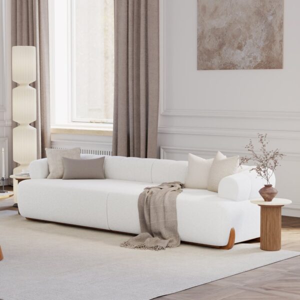 Boucle upholstery, plush lamb fleece texture