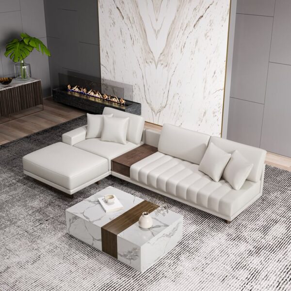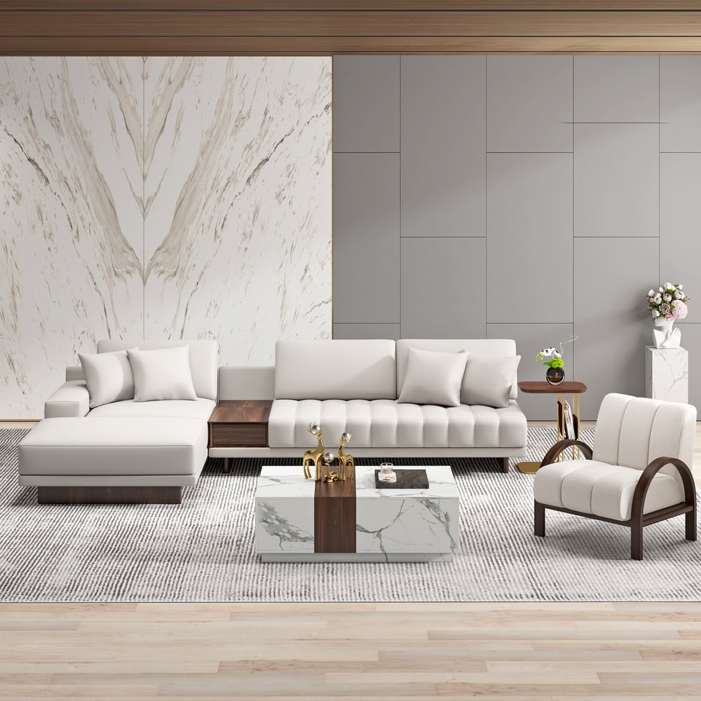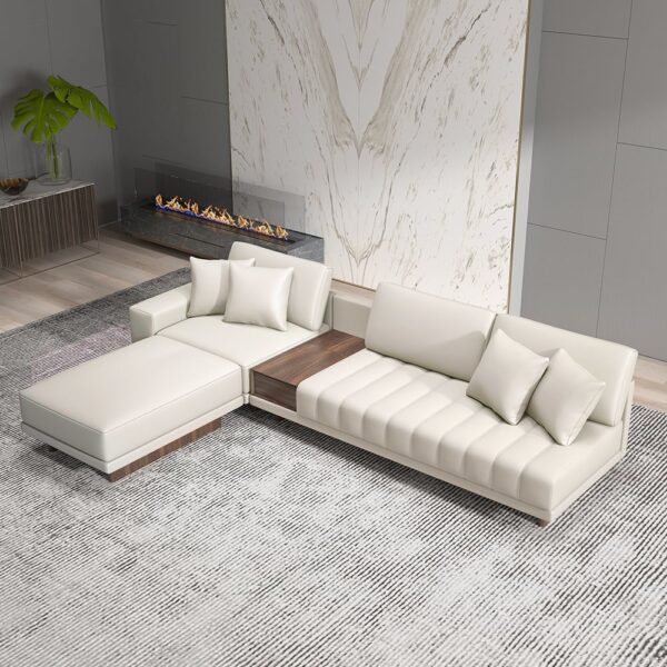 This contemporary 126″ L-shaped sectional sofa, featuring modular components with a matching ottoman Its modular design gives great flexibility to arrange the units in any way that fits different room layouts Perfect for large living rooms, the sectional sofa brings together style, comfort, and functionality into one piece