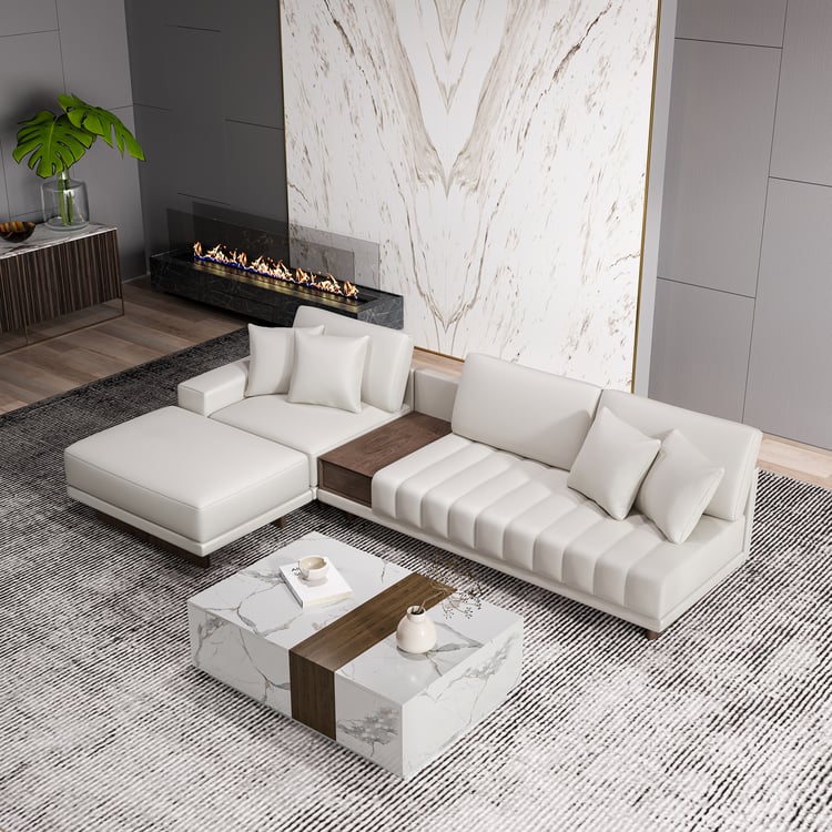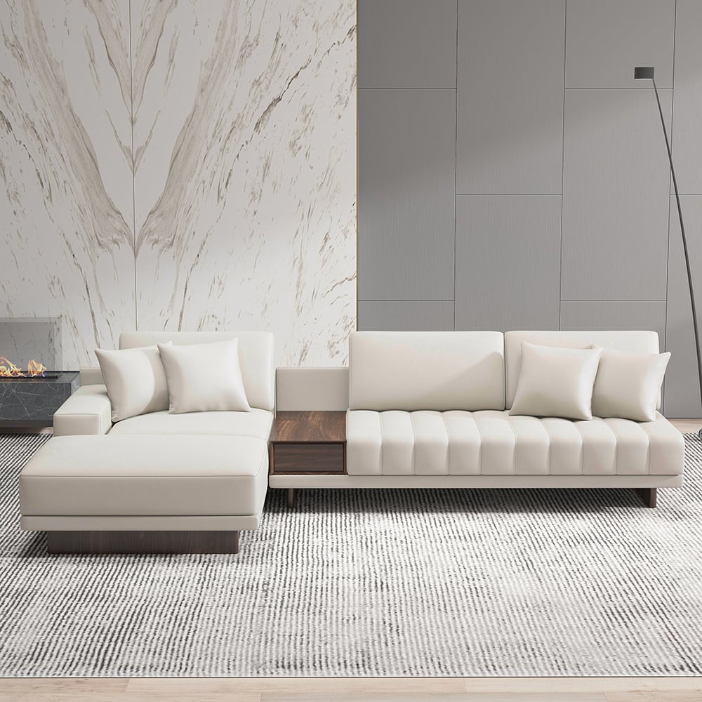 126″ L-Shaped Modular Leather Sectional with Chaise & Ottoman