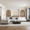 This sectional sofa is upholstered in a choice of cotton & linen, it features three modulars and two pieces of side table with opened storages. With charateric of 157 inch width and a large chaise, which is large enough to set in the living room or lounge space which can accommodate several people at once.