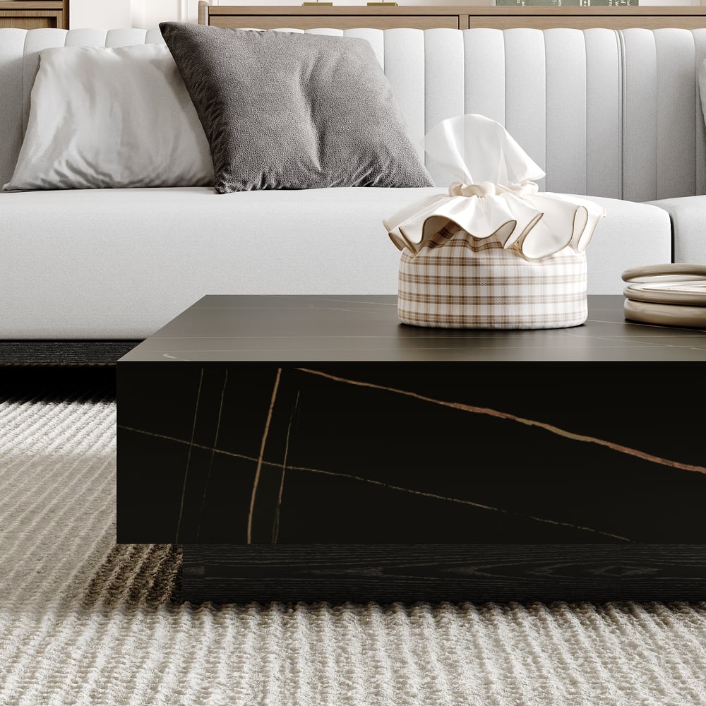 Elevate your living space with this exquisite marble-inspired stone coffee table. Featuring two drawers for discreet storage, it combines luxury and functionality. Its sleek, minimalist design and durable construction make it a perfect addition to modern interiors.