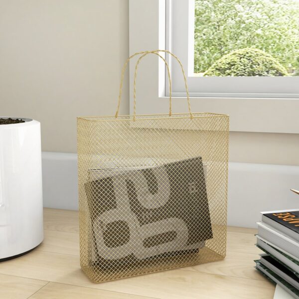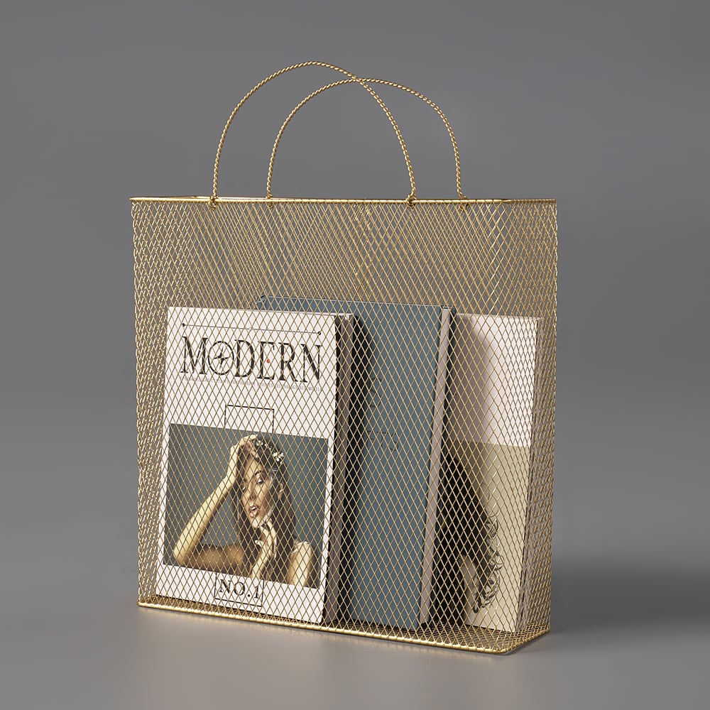 The contemporary metal magazine rack is a great choice if you are looking for stylish and chic furniture belongings. This magazine holder is crafted from metal with a basket and handle. Plus, this one features a movable and easy carry when your family deside to have a short trip in the spring or just a weekend family day. Take a few newspapers or books or magazines to the park, laying on the grass, and enjoy the happiness hours.