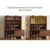 Adjustable shelves customize storage for different shoe heights, from flats to boots