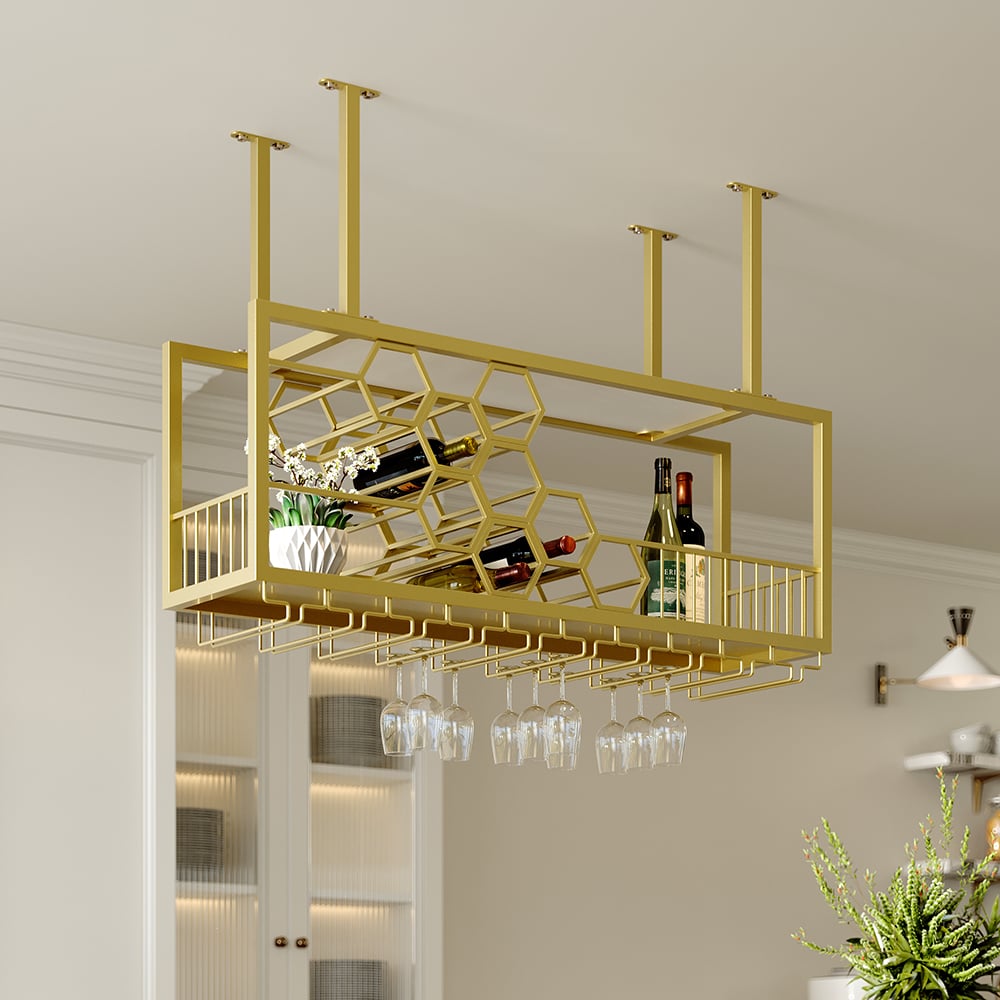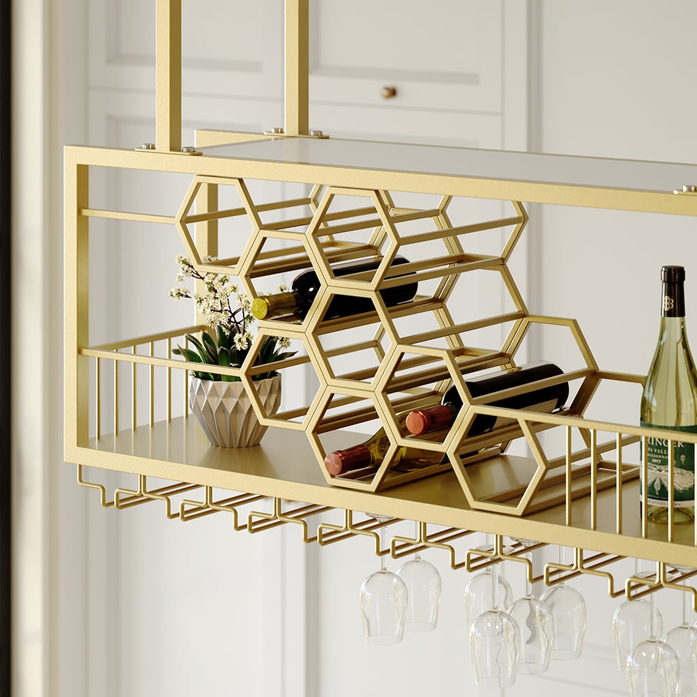 [Modern Design] This hanging wine rack provides relaxed, but luxurious, open shelving as the perfect complement to your home.