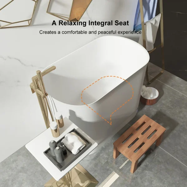 Indulge in pure relaxation with the ultimate luxury of the 40″ Modern Freestanding Stone Resin Soaking Bath. Designed for maximum comfort, this sleek oval bathtub features a deep soak that will cradle your body, letting you relax in serene bliss. Constructed with durable stone resin in a matte white finish, it is perfect for smaller rooms and features an ergonomic seat for added support. Whether indoors or outdoors, it is the perfect merge of modern design and soothing soak.