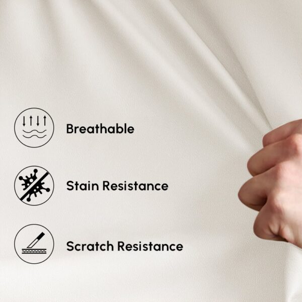 Faux leather upholstery is easy to clean and smooth to the touch