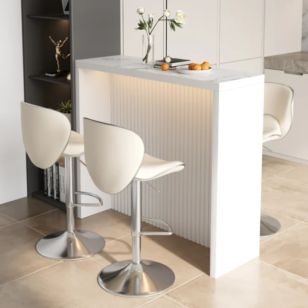 white kitchen island with an attached stunning rock slab top is sleek in design, combining modern elegance with practicality. From ample room for food preparation to casual dining, this durable construction assures longevity and is a perfect centerpiece for your kitchen.