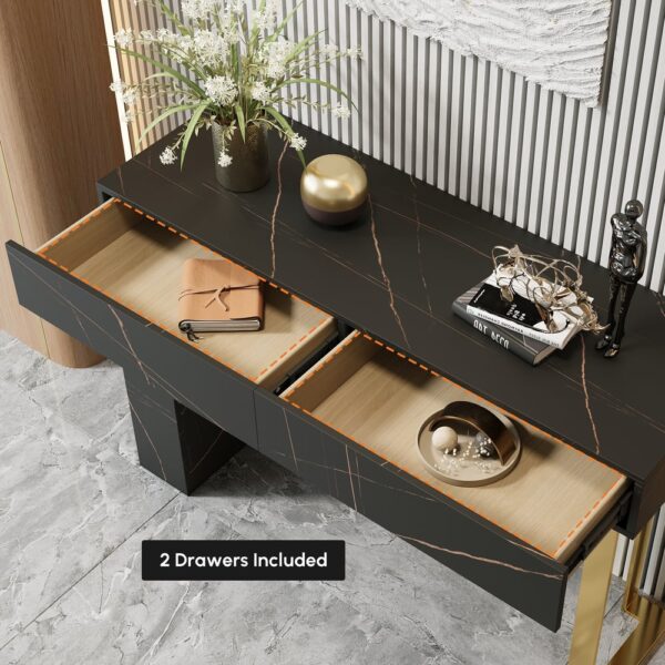 This is a simple and stylish console table, whether it is placed on the porch or behind the sofa, it can create a warm, fashionable and comfortable atmosphere for you. The high-quality materials and stylish appearance make your living room and porch have different Charm. Create a warm welcome with the special design of this whie and gold console table.