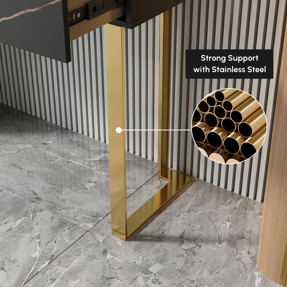 This is a simple and stylish console table, whether it is placed on the porch or behind the sofa, it can create a warm, fashionable and comfortable atmosphere for you. The high-quality materials and stylish appearance make your living room and porch have different Charm. Create a warm welcome with the special design of this whie and gold console table.