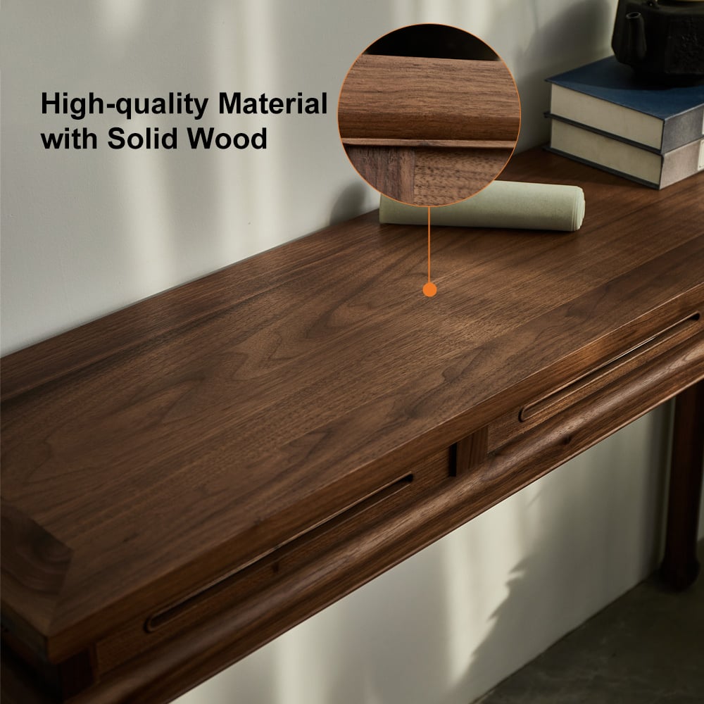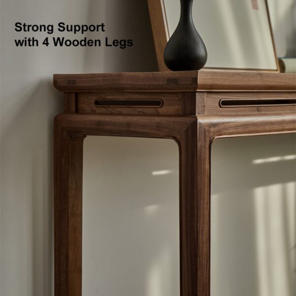 Transform your home decor with our top-rated Solid Wood Walnut Console Table – the ultimate statement piece for any space. Its mid-century modern style and sleek design are sure to impress, while its solid wood construction ensures durability and longevity. Crafted with exceptional attention to detail, this console table boasts a stunning and sophisticated design that will elevate any room in your home. Perfect for displaying your favorite decorative items or creating a focal point in your entryway or living room, it’s the perfect combination of style and functionality. Built to last, this console table is crafted from high-quality solid wood, ensuring that it will provide a functional surface for years to come. Its sturdy construction not only adds a touch of sophistication to your home but also provides the perfect solution for your display needs.