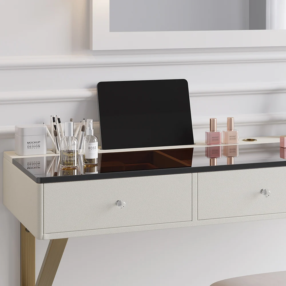 47″ Leather Floating Tempered Glass Top Makeup Vanity