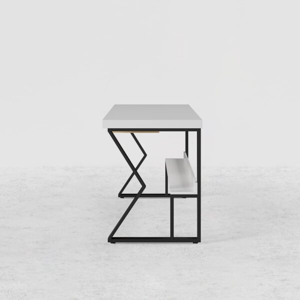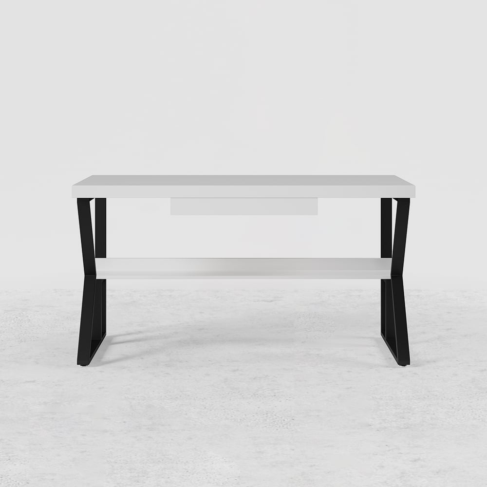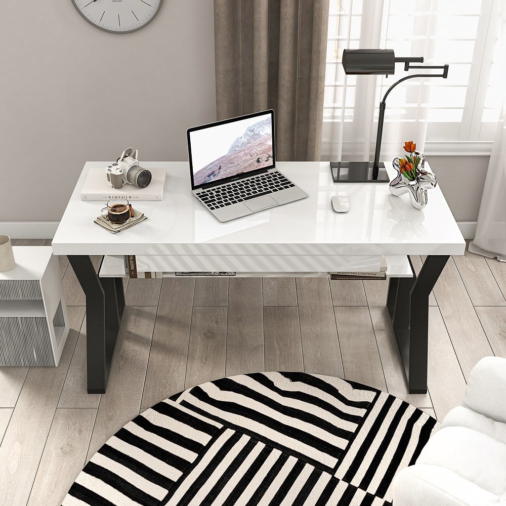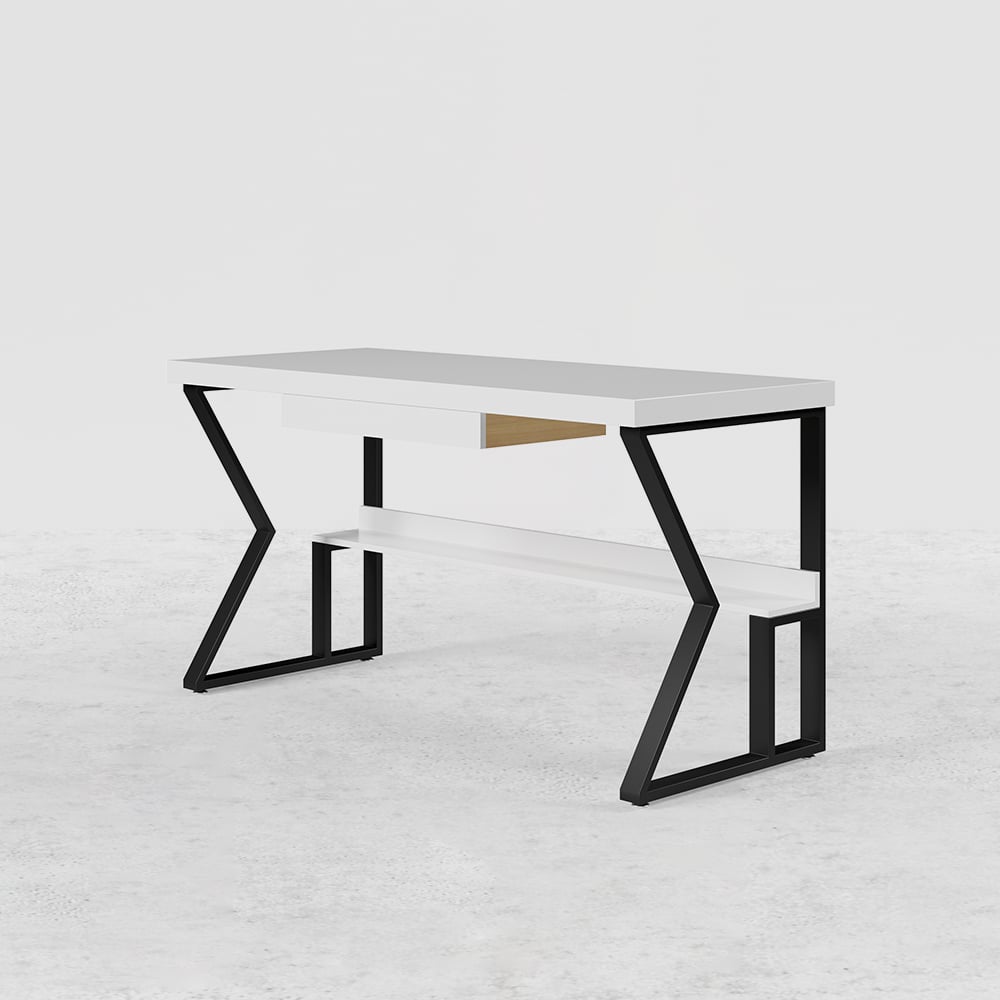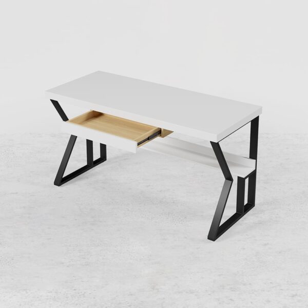 The office table, which adeptly combines austerity and luxury, will be praised in the home office or home study room. It will be a bragging point at any home office, main office area, or home library, among other venues. The tabletop is erected of wood pulp and metal, with a sturdy design ensuring long-lasting pine wood and metal construction ensures that the product will survive for years. This computer table with drive shelves and drawer is for your place to store even documents, books, wires, and other items are neatly kept in a drawer and on a shelf in the corner. Because of its natural hue, it will provide a sense of freshness to any home design. Because of its availability in four different sizes, making it the ideal accent to any home office or corporate setting, it can fit any place.