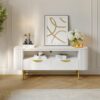 Gold-finished drawer handles enhance the modern aesthetic