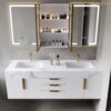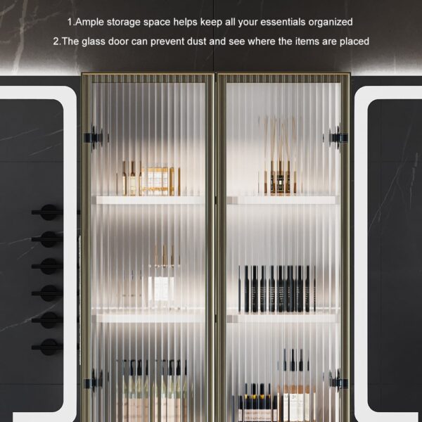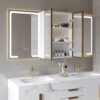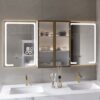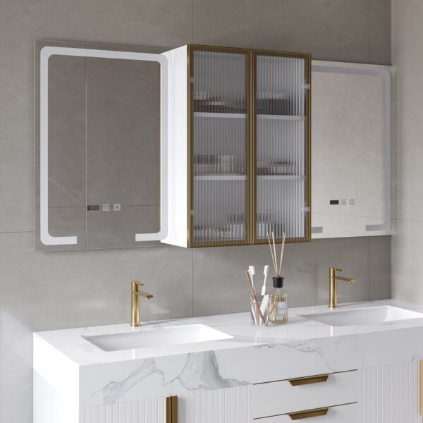 Smart LED Medicine Cabinet – Dual illuminated mirrors with 3 color lighting modes and touch controls for customized brightness.