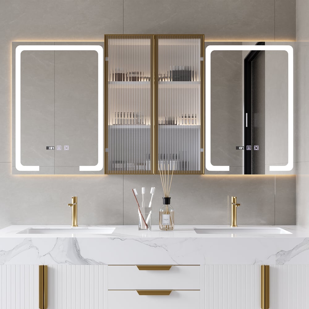 Smart LED Medicine Cabinet – Dual illuminated mirrors with 3 color lighting modes and touch controls for customized brightness.