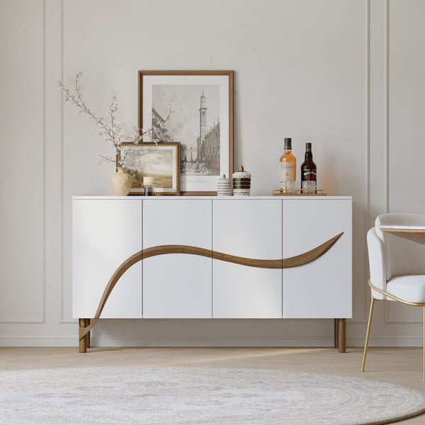 63” White & Walnut Contemporary Sideboard Cabinet 4-Door