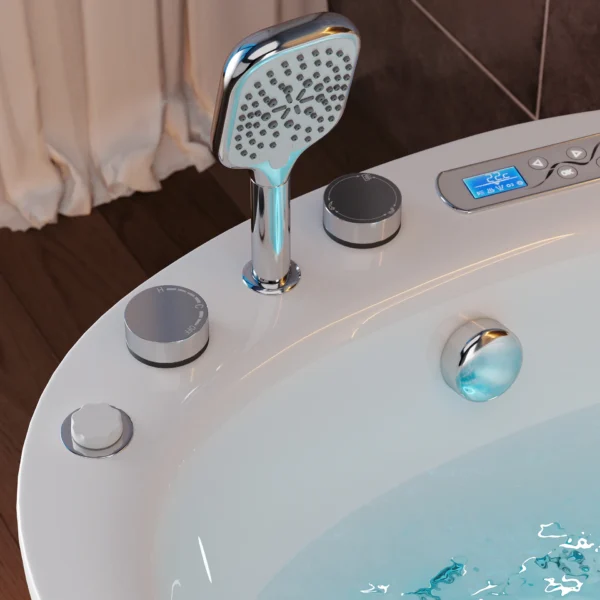 66.7″ Modern Oval Jacuzzi Bathtub with LED Waterfall Pillow & Thermostatic Control
