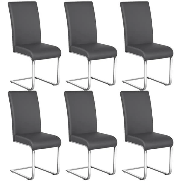 6PCS Dining Chairs Faux Leather Chairs for Kitchen Dining Room Metal Legs Faux Leather Seat Modern Kitchen Furniture Dark Gray