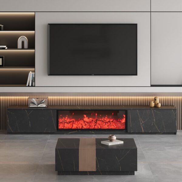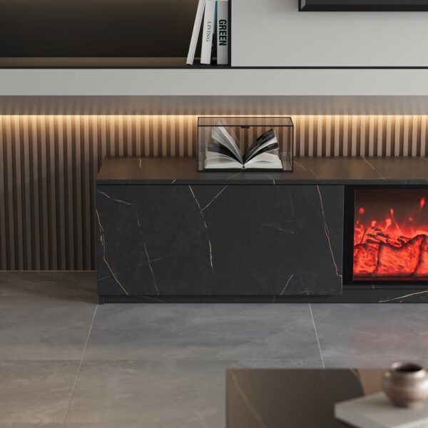 This TV cabinet is made of high-quality MDF and marble veneer plate, durable and stylish. The electric fireplace inbuilt has easy control, with a capacity to deliver far more realistic 3D flame effects, glowing logs, and embers to create coziness in the atmosphere. This comes with ample storage space, making it the best choice for decorating the living room and practicality.
