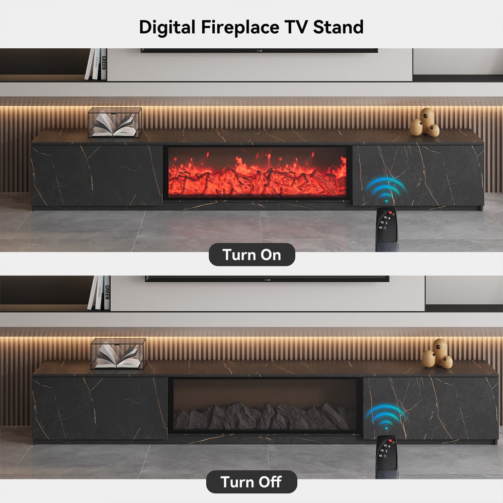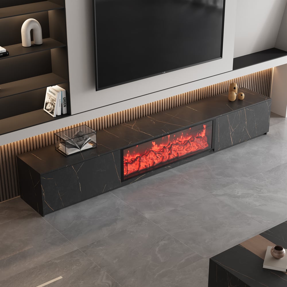 71″ Marble Veneer Electric Fireplace TV Stand with 2 Drawers