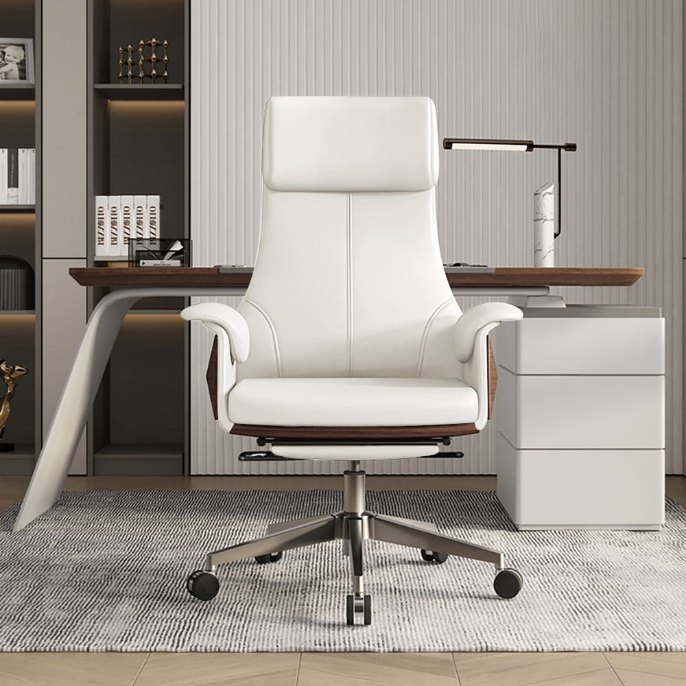 71″ Modern White Computer Desk Rectangular Executive & Reclining Leather Office Chair