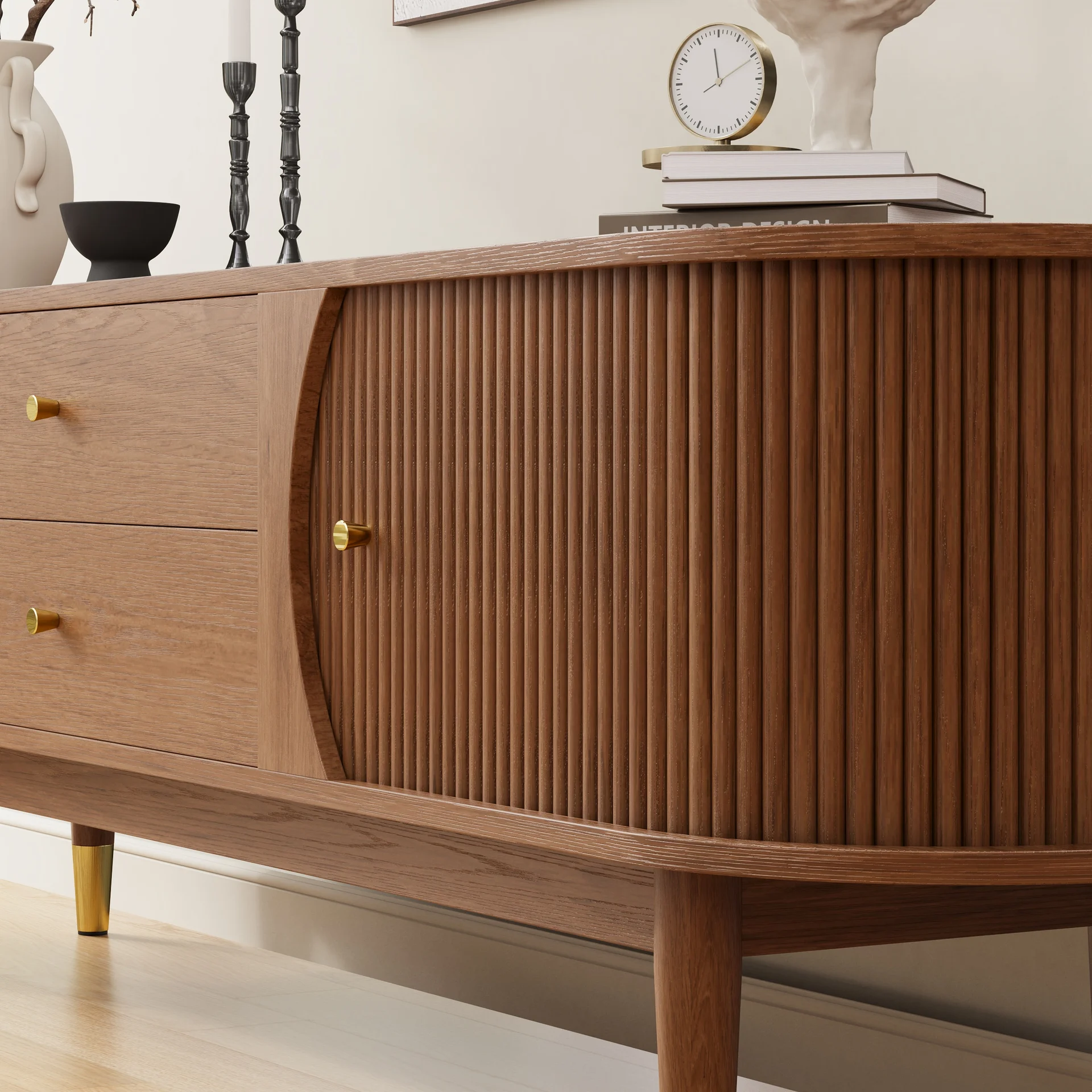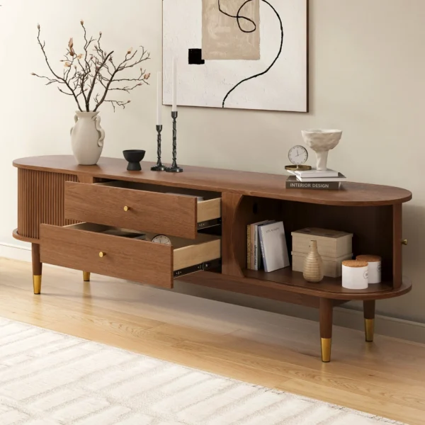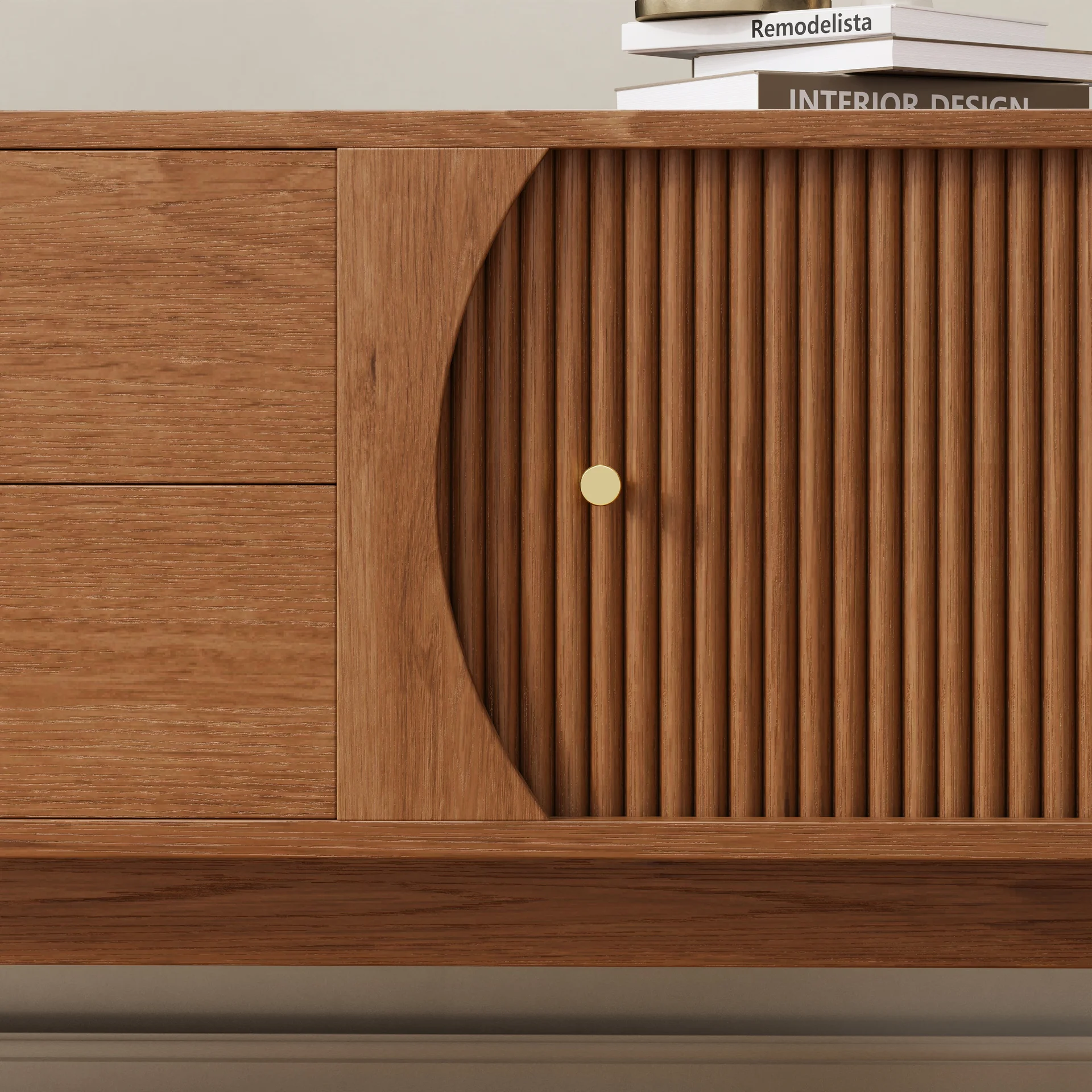 72" Ash Wood Fluted TV Stand with Storage selling image