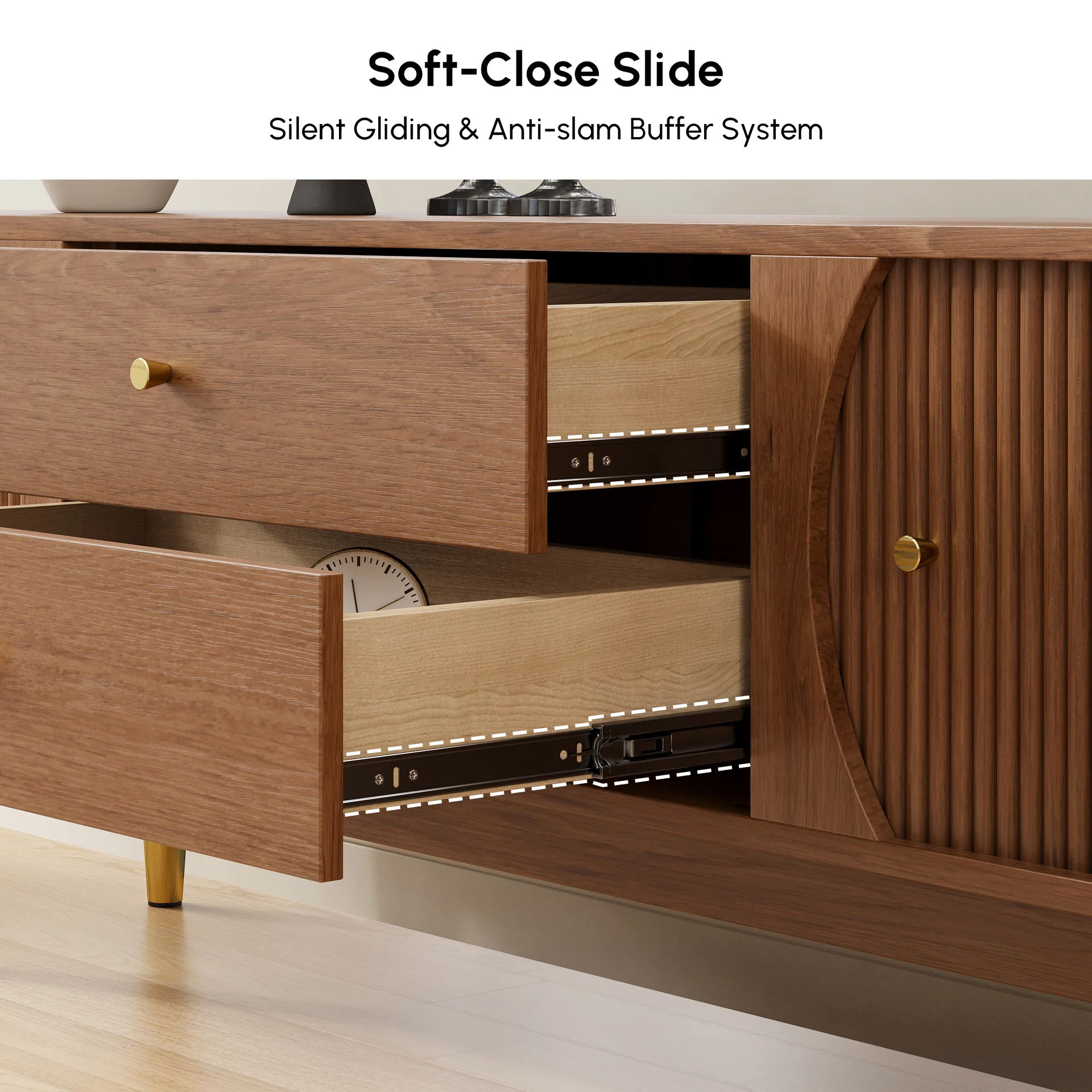 72" Ash Wood Fluted TV Stand with Storage weights dimensions image