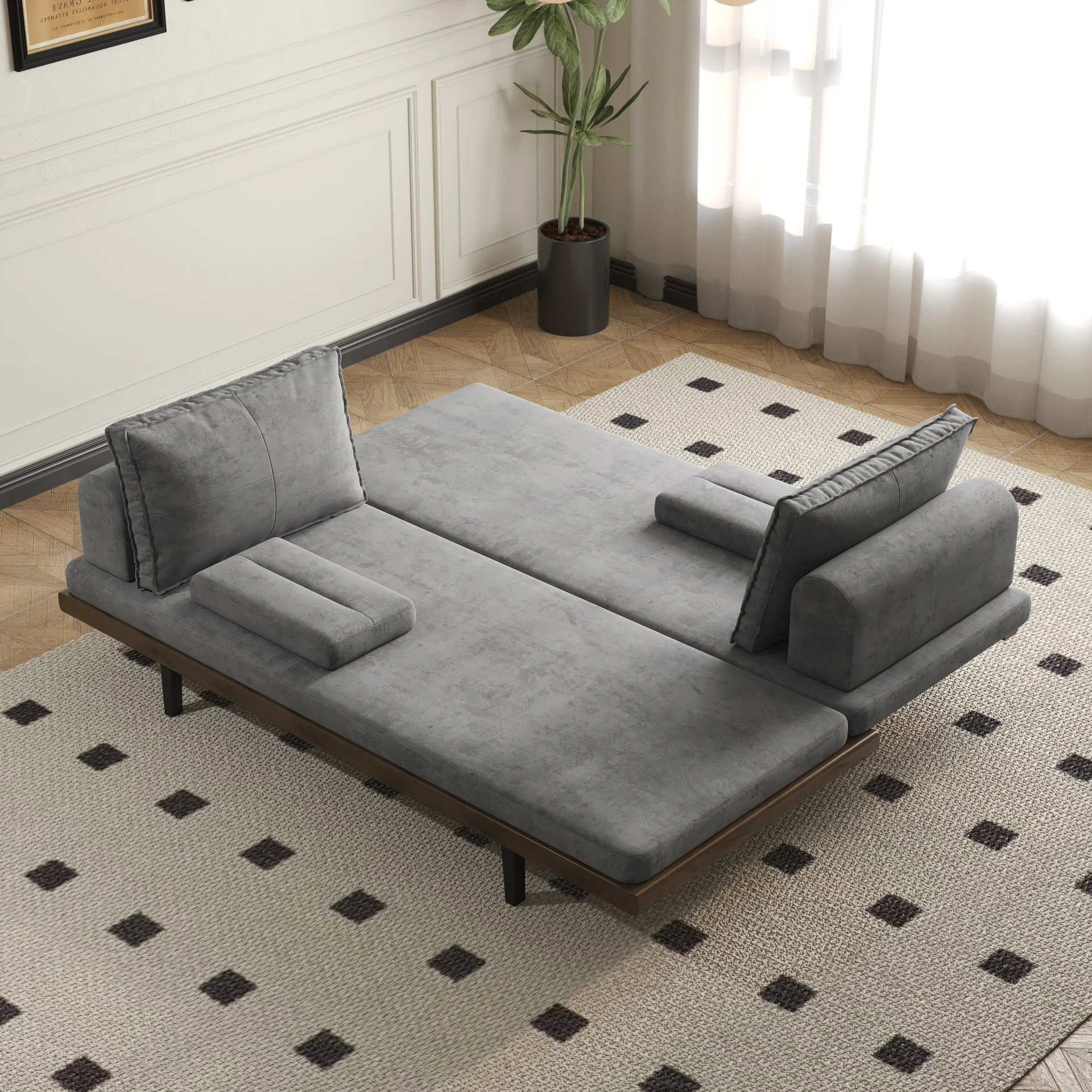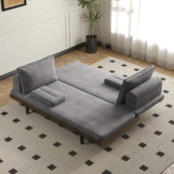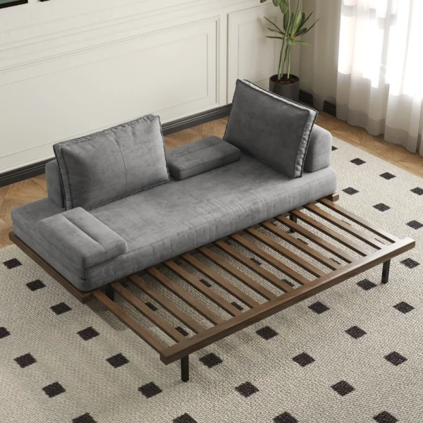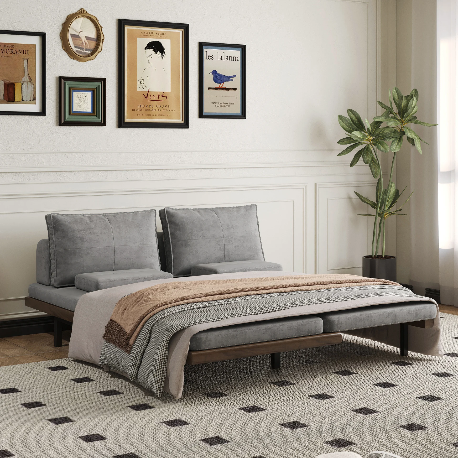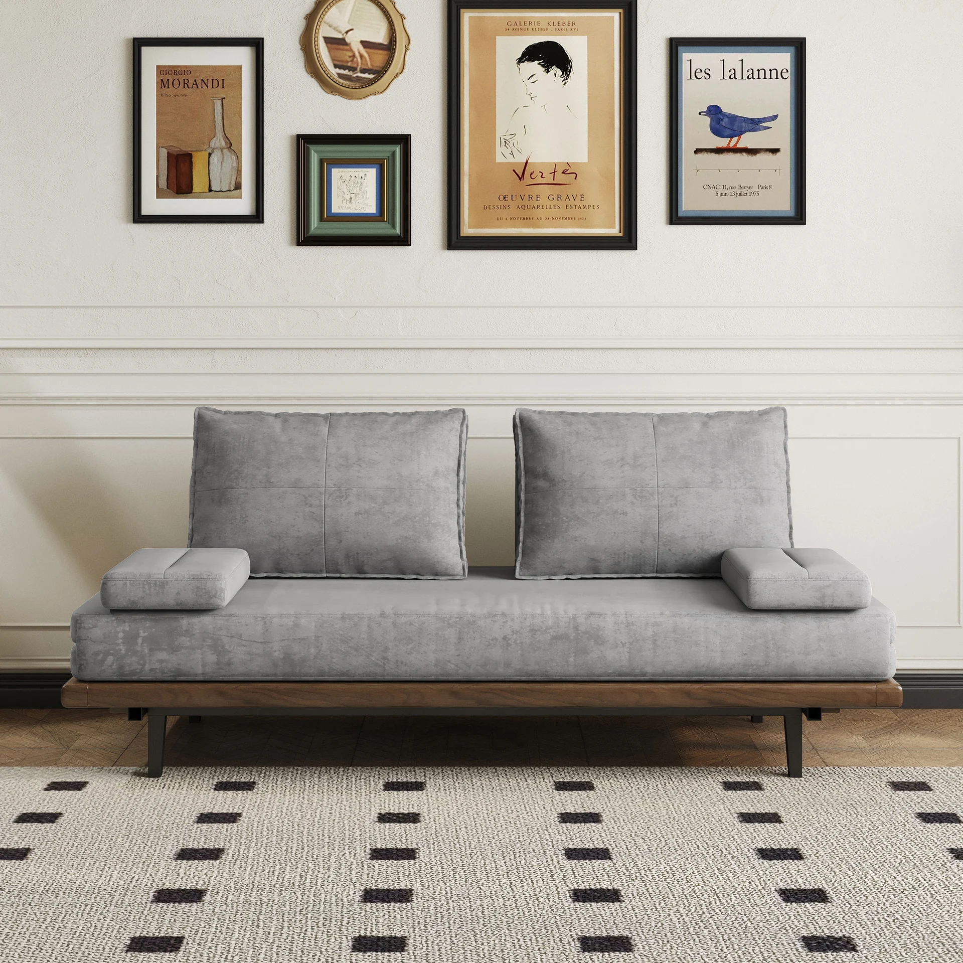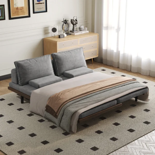 Crafted from cotton-linen blend, sofa bed brings mid-century charm with cozy elegance, adding vintage-inspired style to any modern living space.
