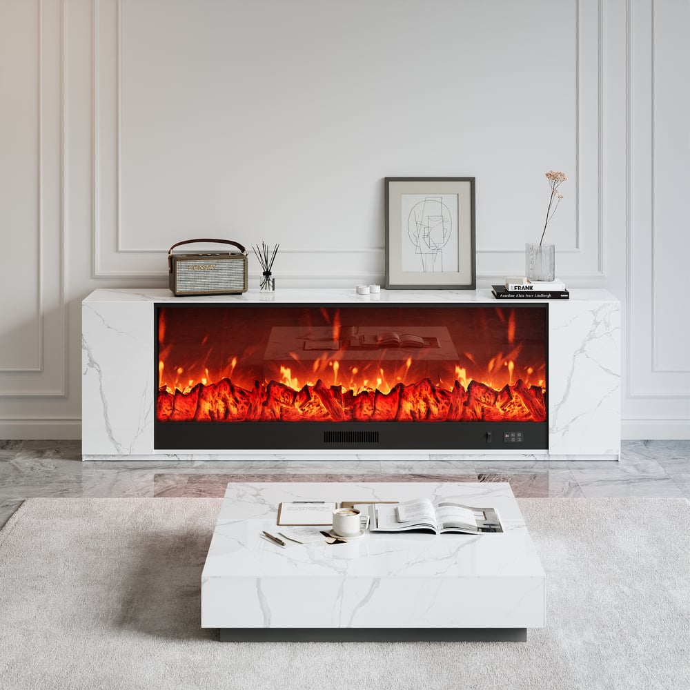 79″ Sintered Stone Electric Fireplace TV Stand & Coffee Table Set