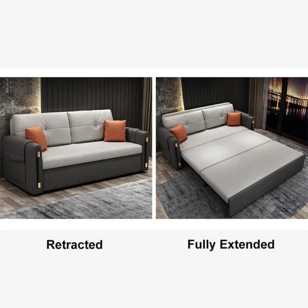Elegant and stylish, this sleeper sofa will transform any living room into a comfortable lounge. Leath-are upholstery and seating padding with high density foam adds maximum comfort for you when lounging after a long day. Come with a metal frame and stainless steel legs, this sofa delivers sturdy support and durable performance. Lend a touch of luxury in your living room with this sofa.