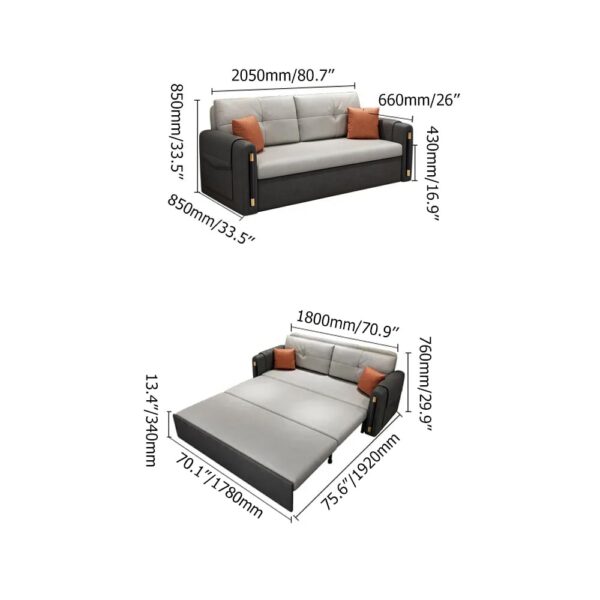 81" King 3-Seater Leath-aire Convertible Sleeper Sofa weights dimensions image
