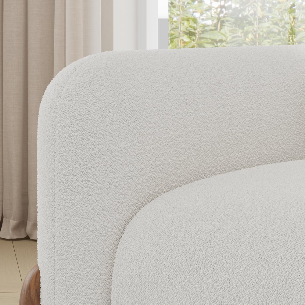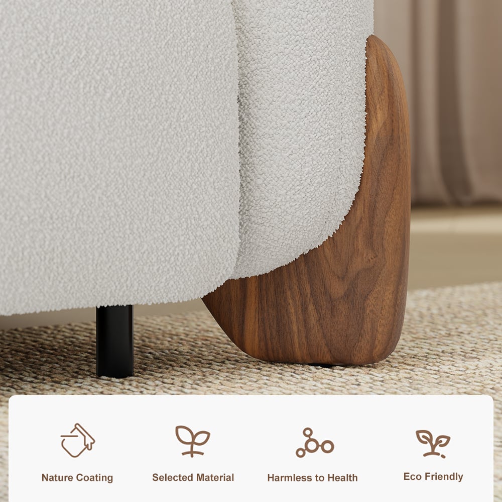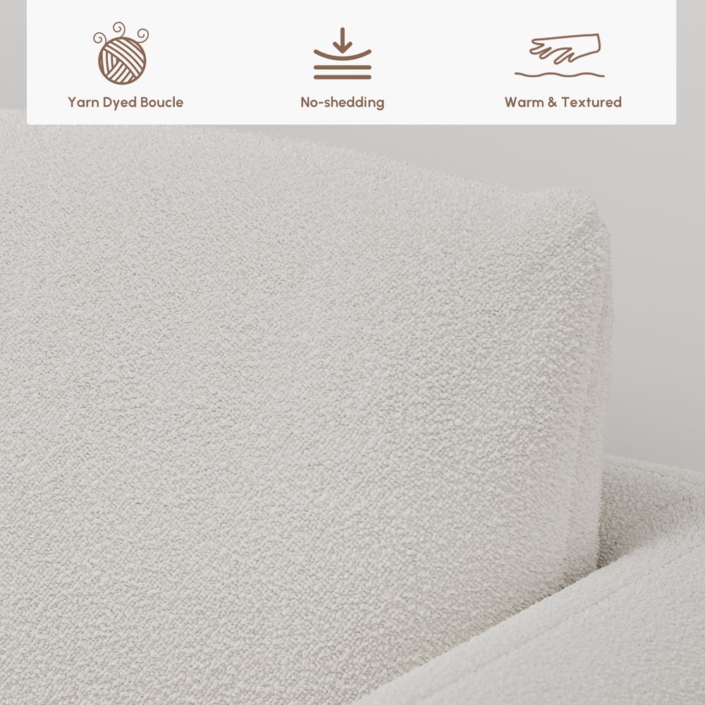 No-shedding boucle upholstery exudes warmth and fluffiness.