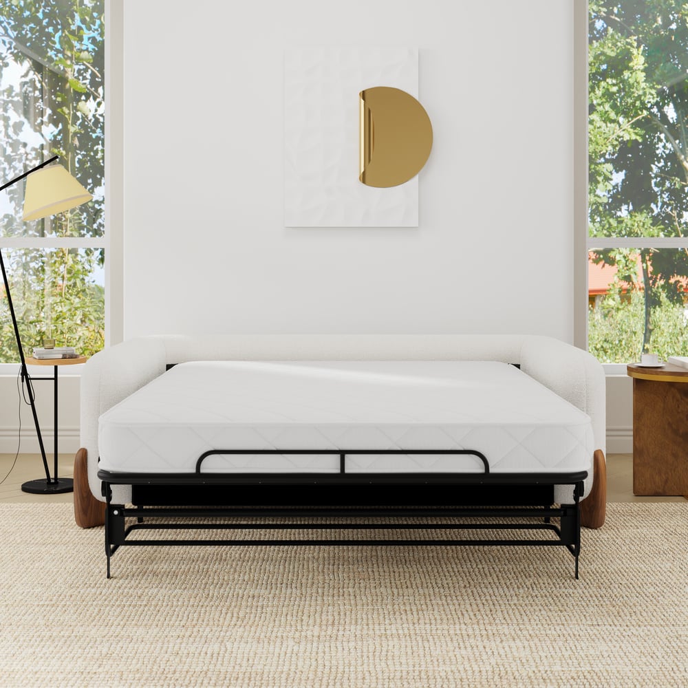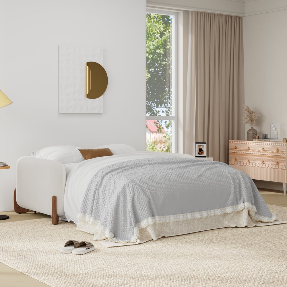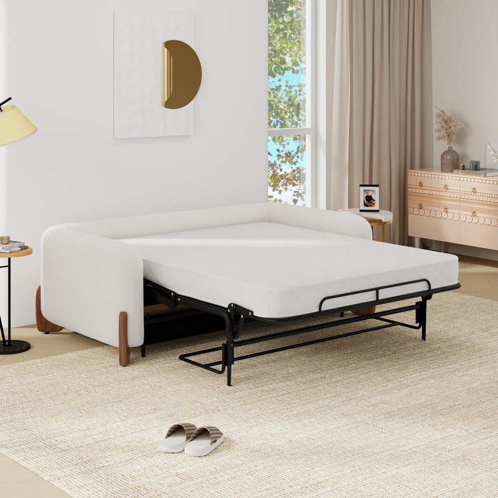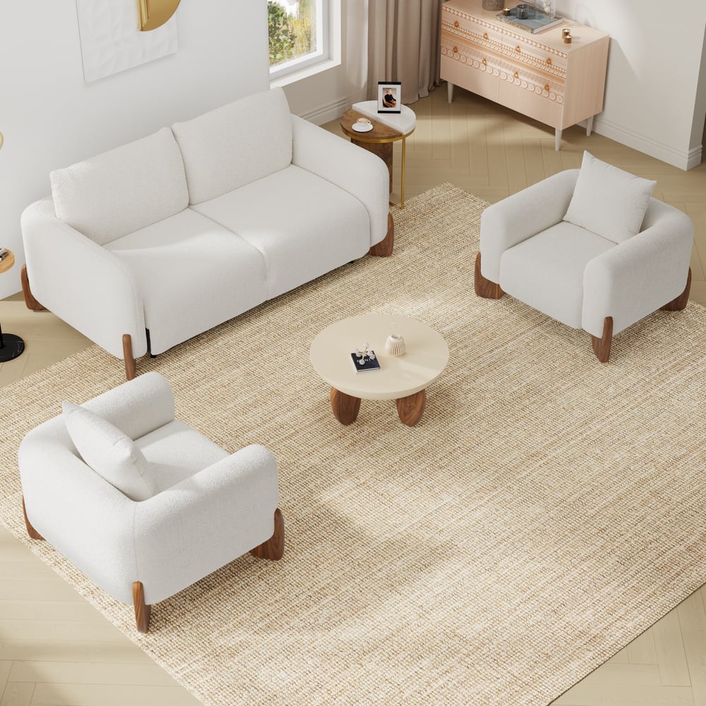 No-shedding boucle upholstery exudes warmth and fluffiness.