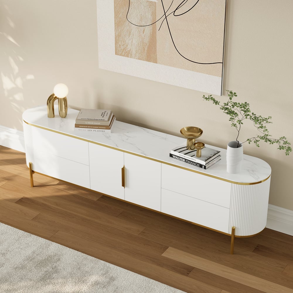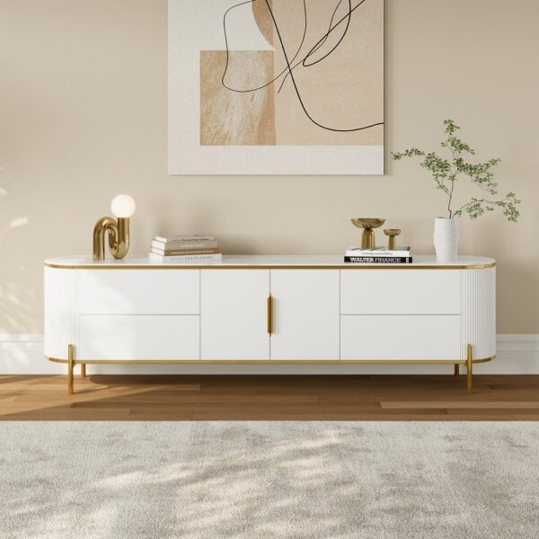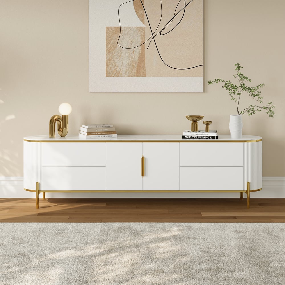 Ample Storage: Four spacious drawers and a two-door shelf keep your media accessories organized and within reach.
