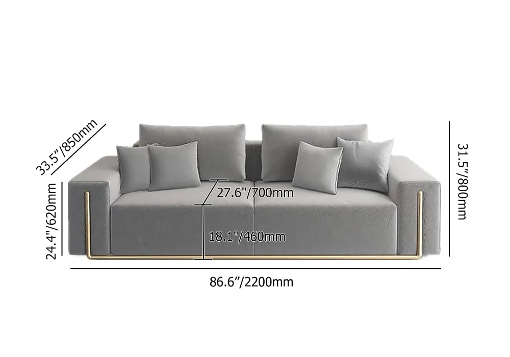 – Overall Dimensions: 86.6″W x 33.5″D x 31.5″H (2200mmW x 850mmD x 800mmH)