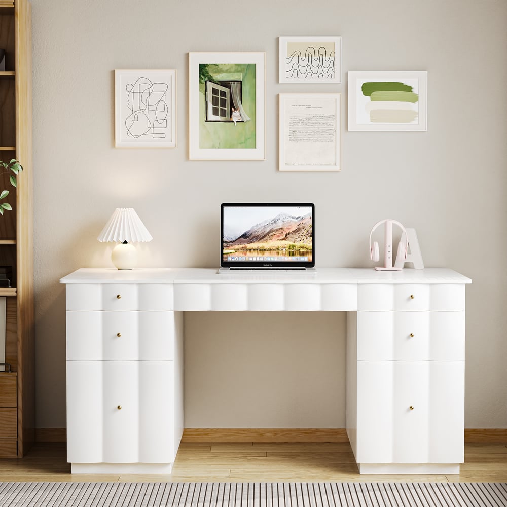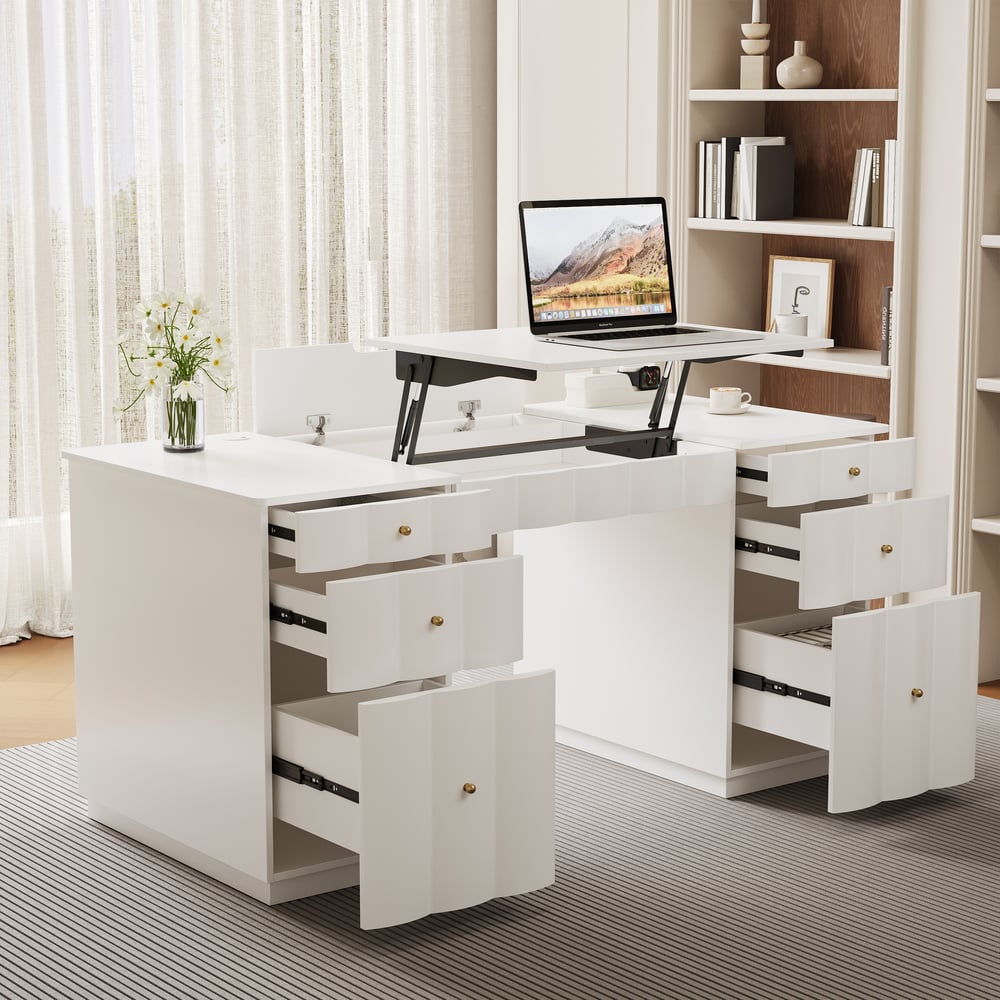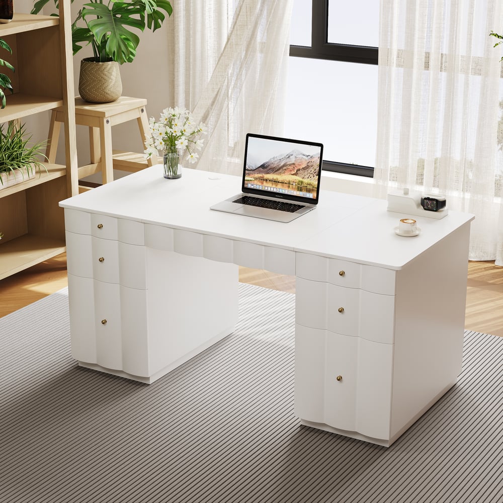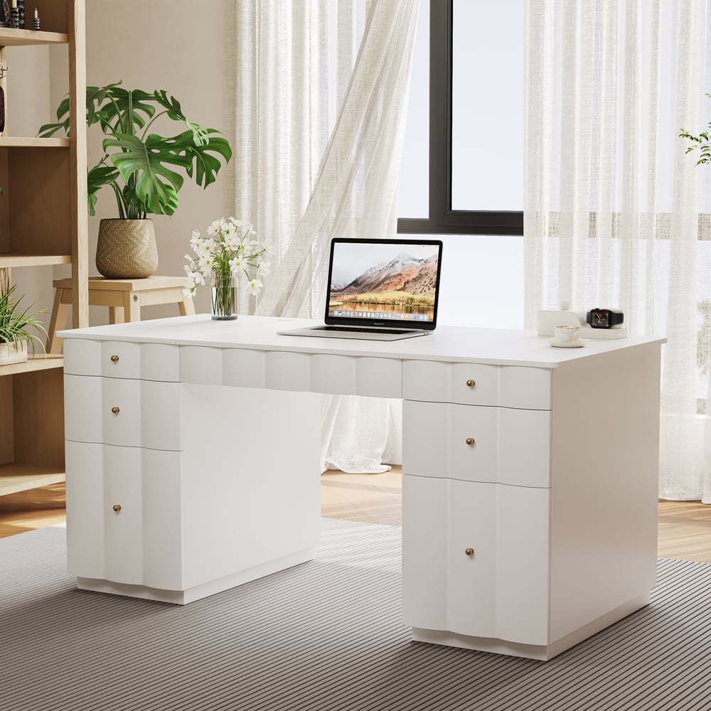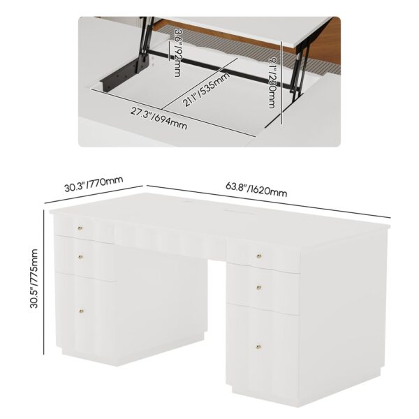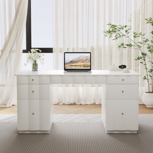 French Style Design With Ample Workspace: The generous 63.8 x 30.3 inch desktop offers plenty of room for monitors and work materials, blending functionality with elegant design.