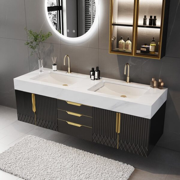 Floating Design: Wall-mounted vanity gives a minimalist and modern look.