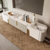 Artus 78.7″ Stone Top Beige & Gold TV Stand with 4 Doors and Storage