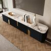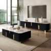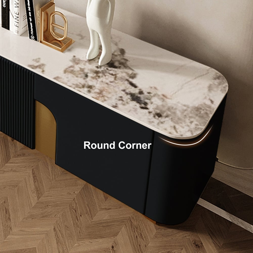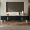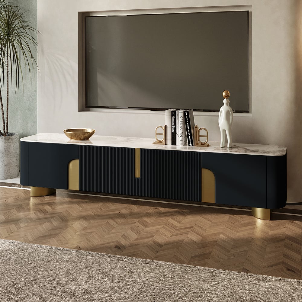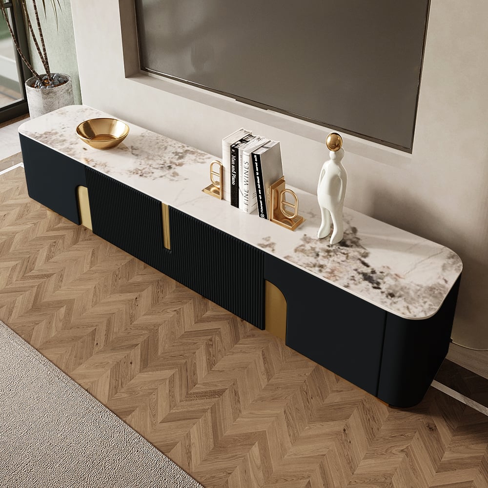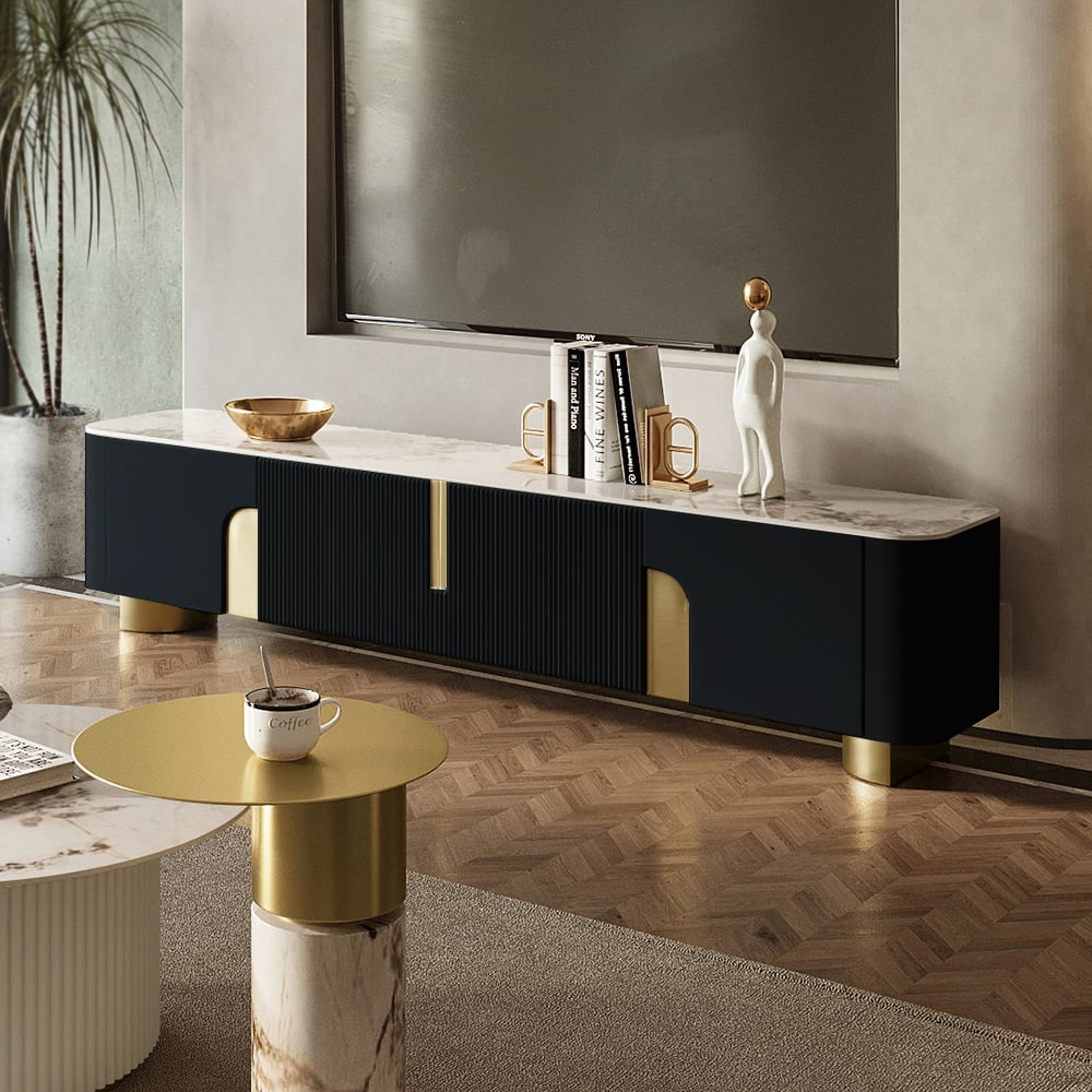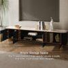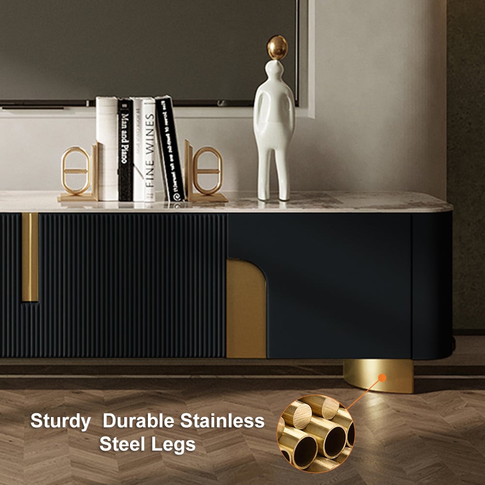The Artus TV console combines premium sintered stone durability with smart storage. Slatted gold accents frame two 17.5″ cabinets and a 34″ center unit with shelve. Rounded edges and simple assembly make it both safe and effortless.