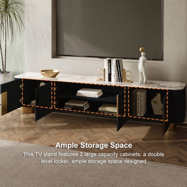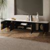Artus Modern Black TV Stand Stone Top 4 Doors with Storage Media Console TVs up to 85″