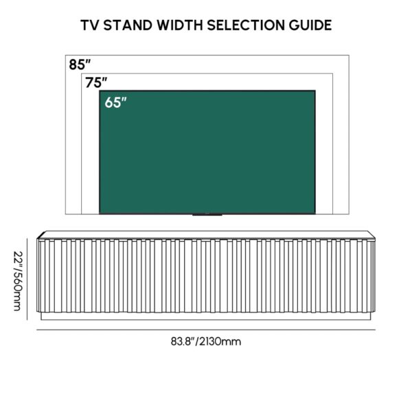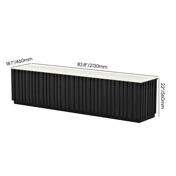 Aura 83" Ash Wood Fluted Black TV Stand with Sintered Stone Top weights dimensions image