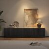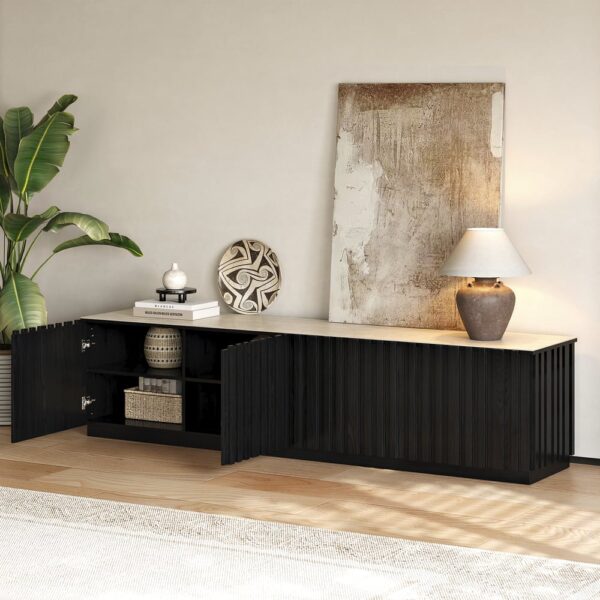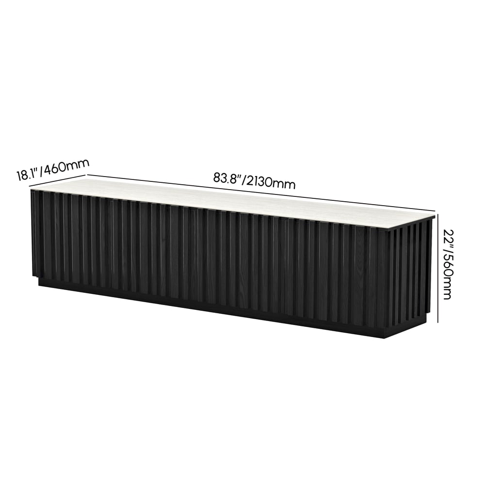 Aura 83″ Ash Wood Fluted Black TV Stand with Sintered Stone Top