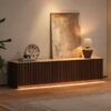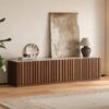 Aura 83″ Ash Wood Fluted Walnut TV Stand with Sintered Stone Top