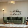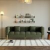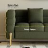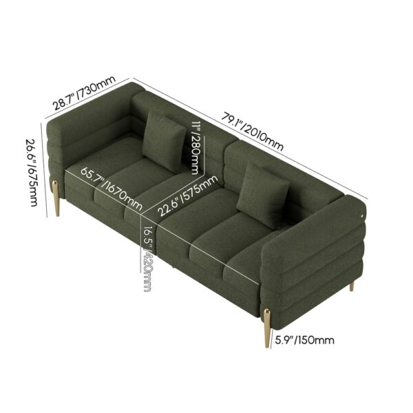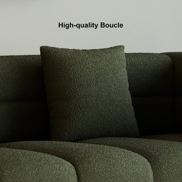 This 3-seater sofa features soft curving forms and long horizontal lines with metallic sheen legs. The extra deep seat makes it perfect for seating 3 people. The seat cushion is full and slightly arc-shaped, providing perfect support. Upholstered in performance boucle, features a fuzzy and pillowy touch. Solid wood frame and sturdy metal legs guarantee great load-bearing.