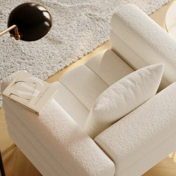 The high armrest design, combined with high-quality lambswool fabric, provides a more comfortable experience when reclining.