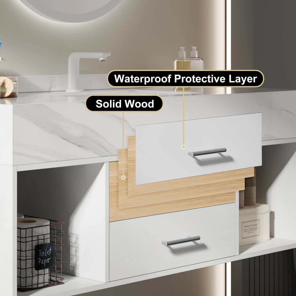 Waterproof surface technology:Protect cabinet against dampness and humidity in the bathroom