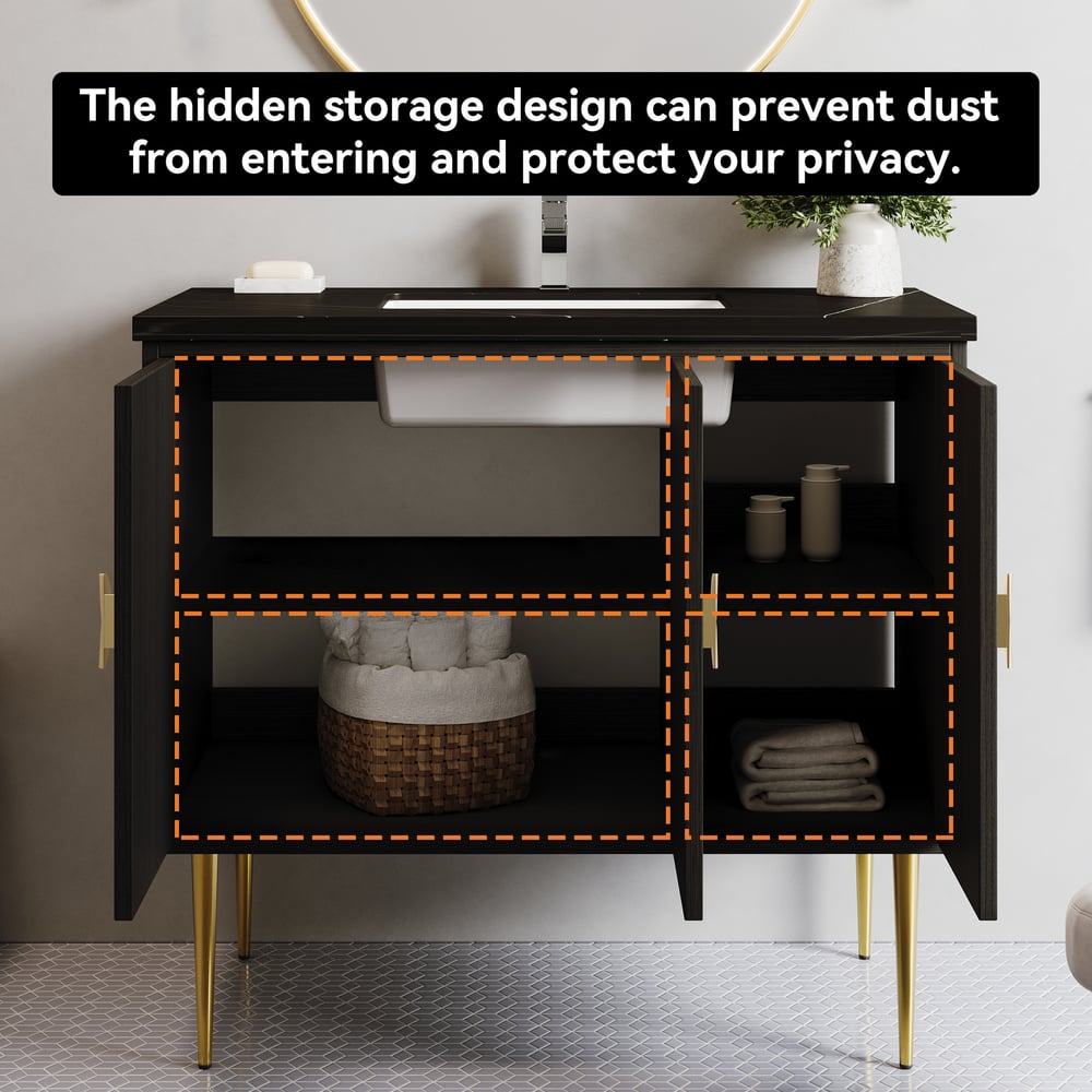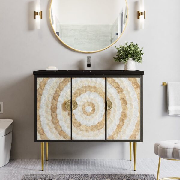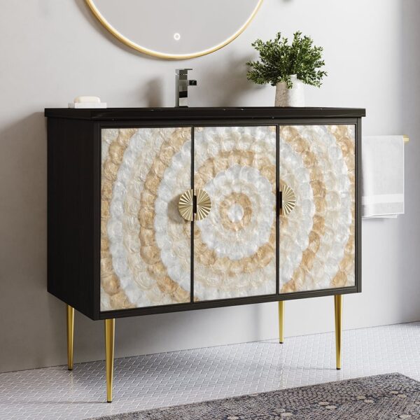 Ample Storage: Three soft-close doors and two shelves for organized storage.